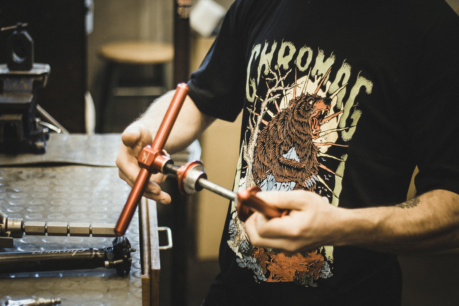 Frames are assembled with plenty of grease, and each one is checked over by one of our mechanics before leaving Chromag HQ.